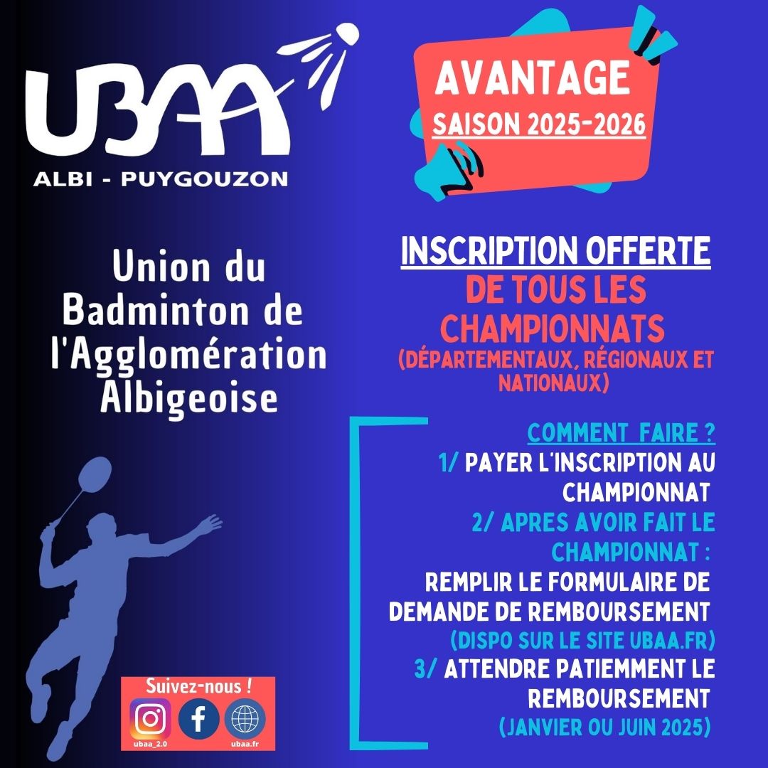 Le club rembourse vos frais d’inscriptions à l’ensemble des championnats (France, régional, départemental).